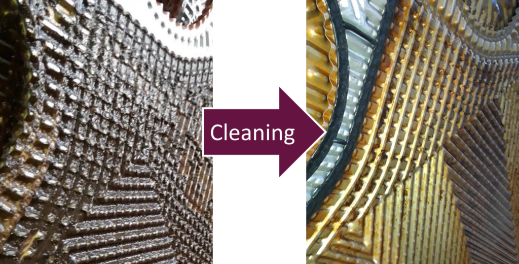 First is to install washing connections to enable quick and cost-effective CIP-cleanings. This way the heat exchanger can be cleaned quickly as often as needed. The second development topic is to find and eliminate the root cause of the fast fouling. This way, the clean-up intervals could be longer.
