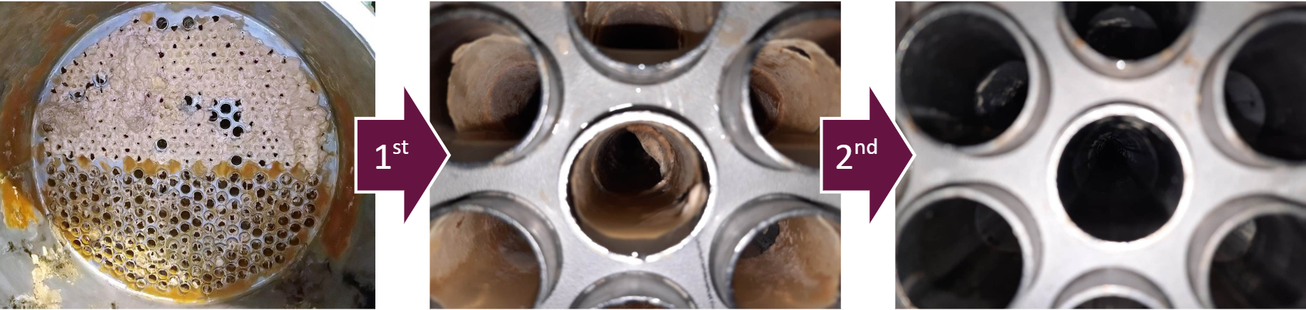In another case, we analyzed two 7 MW heat exchangers in a wastewater circulation circuit. These are typically cleaned 1-3 times a year. The cleaning methods alternated between CIP-cleaning without dismantling and high-pressure washing after dismantling the heat exchanger.